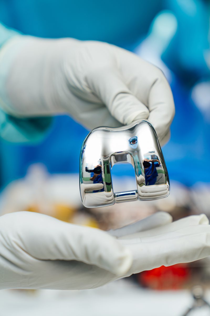 膝关节植入物通常由钴铬合金、钛或聚乙烯(塑料部件)等高级材料制成。
